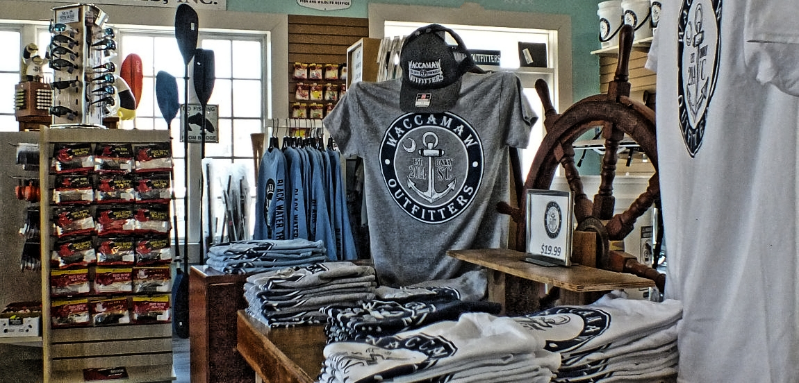 Waccamaw Outfitters is nestled on the Waccamaw River in downtown Conway. On the edge of historic charm is where your expedition of our alluring black waters begins. You may choose to cruise down the river on the pontoon boat under the watchful eye of Captain Matt or venture on either a guided or solo trip in one of our rentable kayaks. If you are a landlubber and prefer relaxing and fishing on the banks of the majestic Waccamaw River, then come on in and check out our selection of fishing lures, one-of-a-kind shirts, hats, cold beverages, and more. Visit us and learn more about why we call our river Black Water Therapy.
